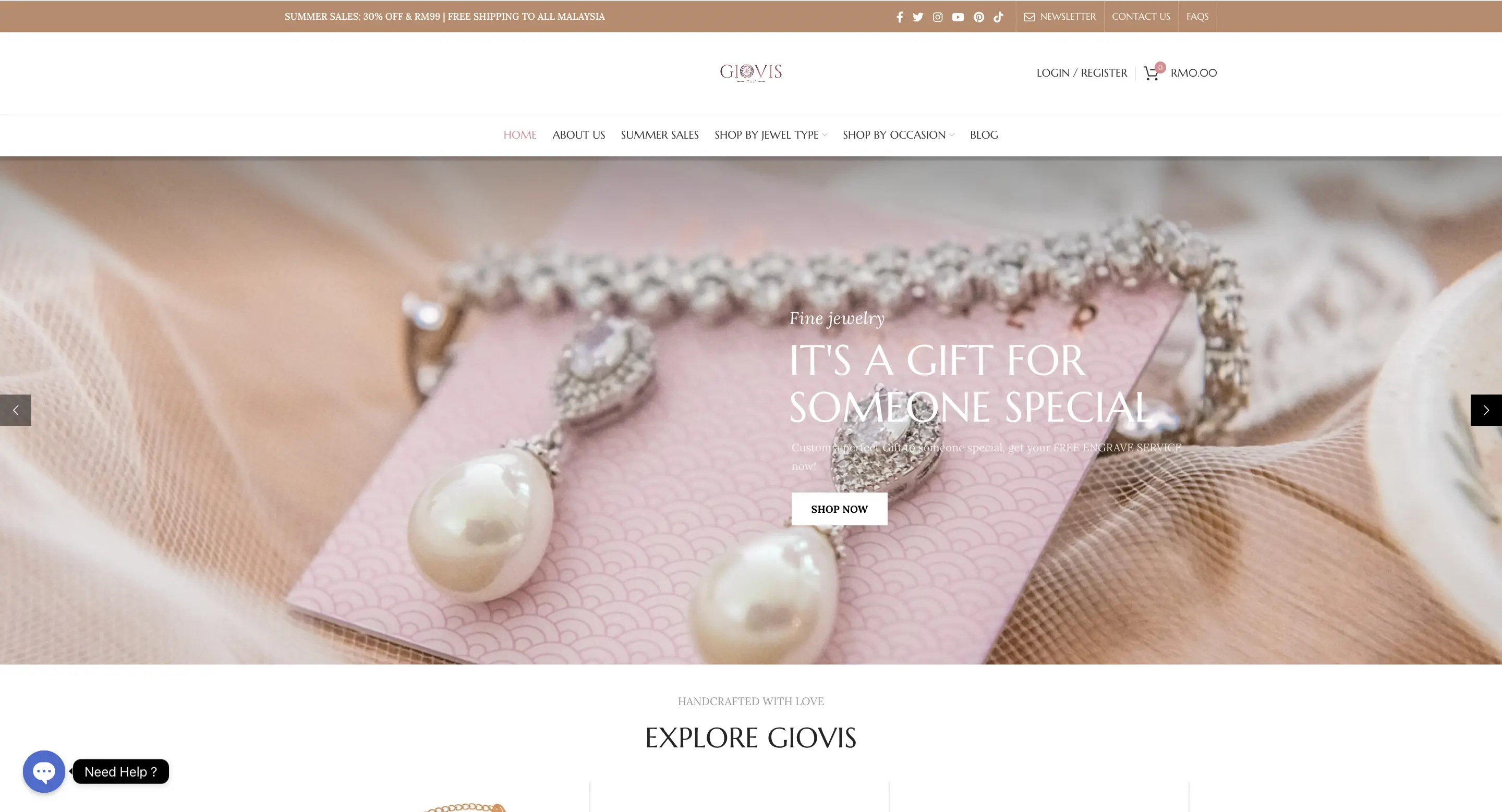 Giovis is Malaysia's premier titanium jewelry brand, specializing in high-quality, hypoallergenic pieces that are both durable and stylish. Their extensive collection includes bracelets, necklaces, earrings, rings, bangles, and anklets, all crafted with precision and care. Giovis offers complimentary engraving services, allowing customers to personalize their jewelry for a unique touch. With a commitment to customer satisfaction, they provide free shipping across Malaysia and a lifetime warranty on all products, ensuring peace of mind with every purchase. Explore Giovis's exquisite range to find the perfect accessory that combines elegance with everyday wearability.